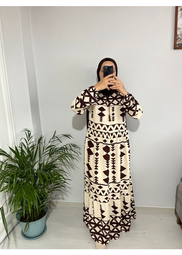 DESENLİ VİSKON ELBİSE